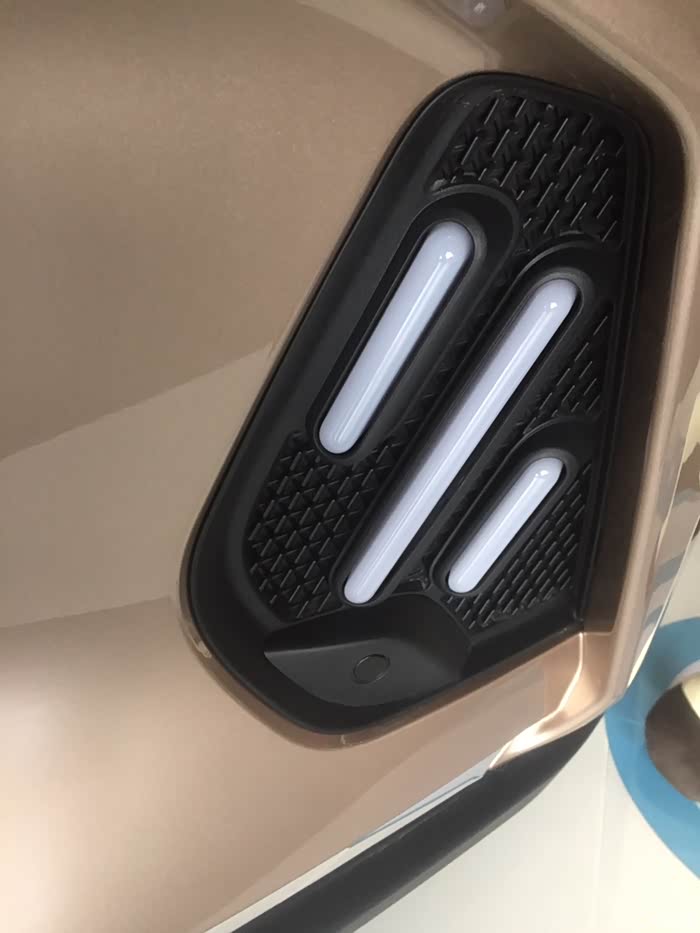 6的前脸还是沿用了5的设计,算是家族脸谱吧,当然也做了些改进,前雾灯加入了一点威马log的元素,看上去很漂亮,简约而不简单,此外6的发光log现在是常亮加闪烁,看上去更加动感。