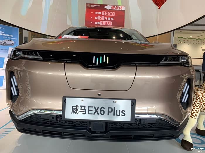 上个周六成都的天气不是很好,没有外出,我们家小威的360度环视左侧摄像头的的图像有一点点错位,所以准备去大使馆检查检查,到了大使馆按正常流程,接车后,因为等工程师们检查维修,空闲之余,到销售厅去转了一转,正好大使馆做周年庆活动,里面好不热闹,在销售大厅的C位摆放着一台新车,哦,就是他——威马EX6plus,够帅气!