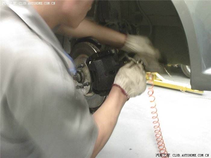 第3次返回车间。这回,2个人研究了一阵,更换了制动泵。我也才看到是制动泵和刹车盘摩擦,把制动泵都磨亮了!有图有真相