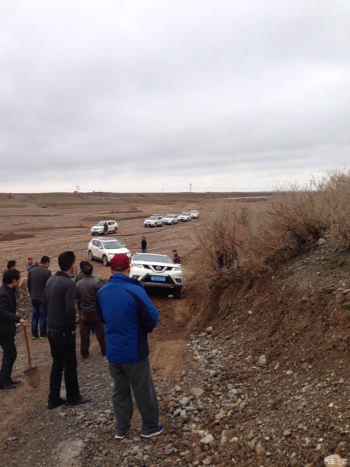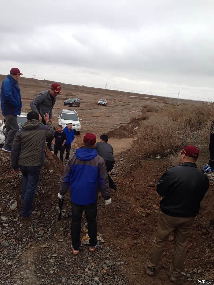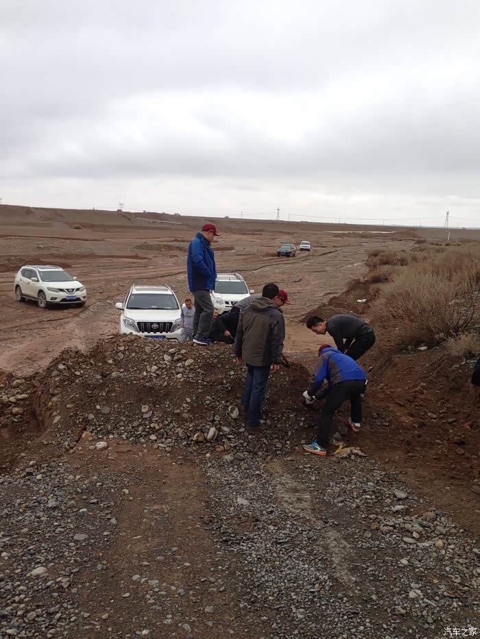 车友年龄不同,但是都有一股劲头,坚持不懈,为了浏览大峡谷中雅丹地貌,克服困难携手挖出一条上山路。