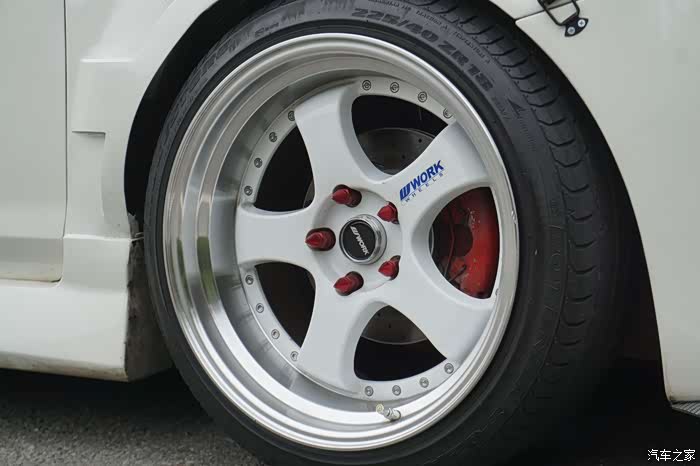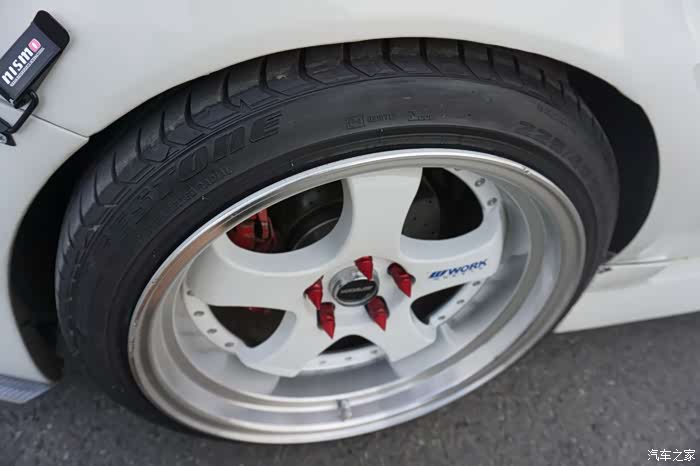 轮毂采用的是Work S1 5/114,3的日系数据,9,5J ET25 加四个华达转矩,VIP风格。前轮是普利司通轮胎,后轮是南港的,为什么差异这么大后面慢慢介绍