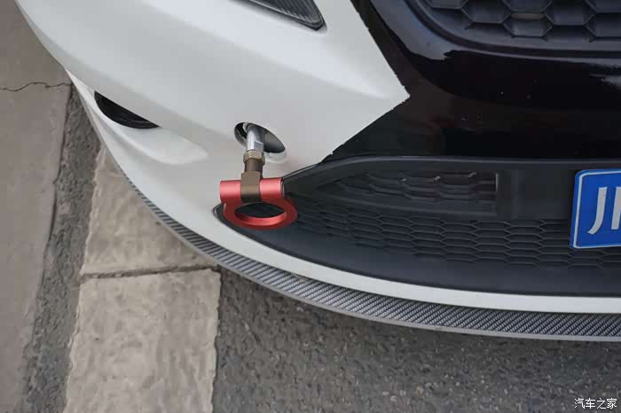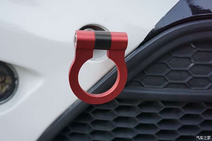 红色金属拖车钩,看来车主对红色情有独钟,处处看见红色装饰