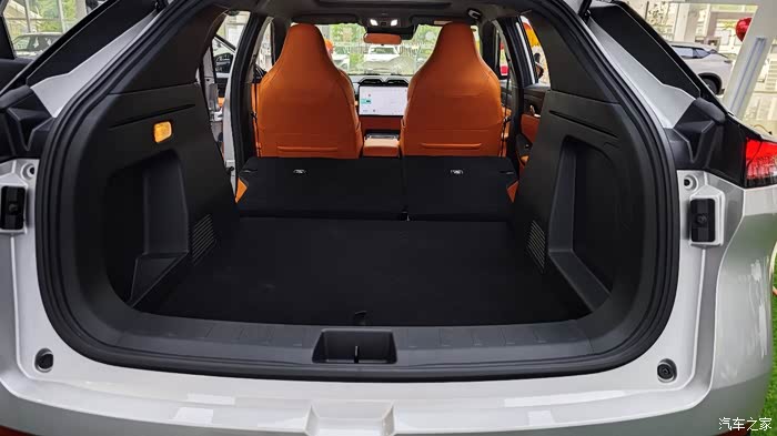 后备箱容量也是非常大,差不多600升,并且后排座椅可以纯平放倒,加上是电车有外放电,铺个气垫床露营是完全没有问题。
