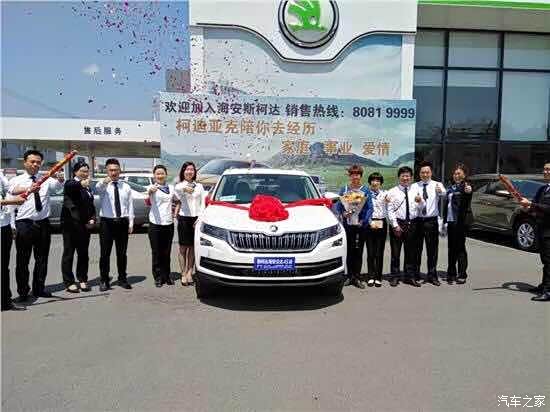 几番周折,我通过各方了解差不多猜到了柯迪亚克的价格,与我预期的价格相差不大。所以下午我就打电话到我们本地的海安斯柯达4S店询问他们店里是否有柯迪亚克现款。店内的经理告诉我,目前柯迪亚克有现款,配置:7座豪华,内饰:流沙金,挂完电话的我明显心动不已,立马准备去店内看看。