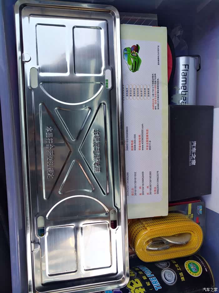 多年开车的习惯,后备箱的整理箱里必备一些日常使用的工具,拖绳,还有电池搭线。