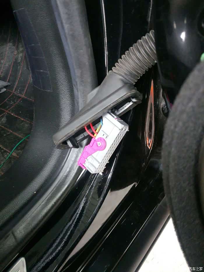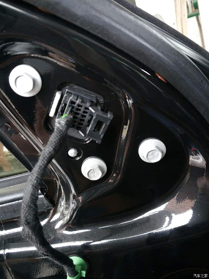 门连接到车身处的插口,也需要加两个端子,车身其实保留了电动折叠电机的线路的