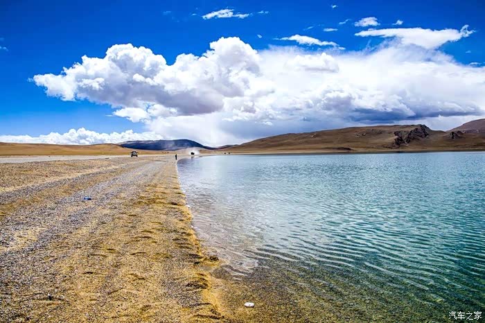 在这里,不仅可以欣赏到美轮美奂的湖光美景,还可以感受藏北绝美的草原风光。湖水清澈透明,因阳光照射、折射出不同深浅的色彩,大片的棉花糖般的云朵显的非常低,仿佛触手可及。停车座视,湖面尽管没有大海的波涛汹涌,却一样的壮阔浩渺、波光粼粼,惬意舒适得不行。