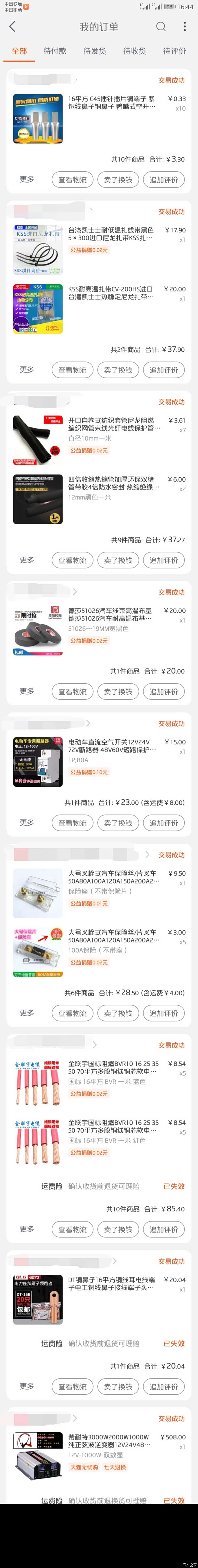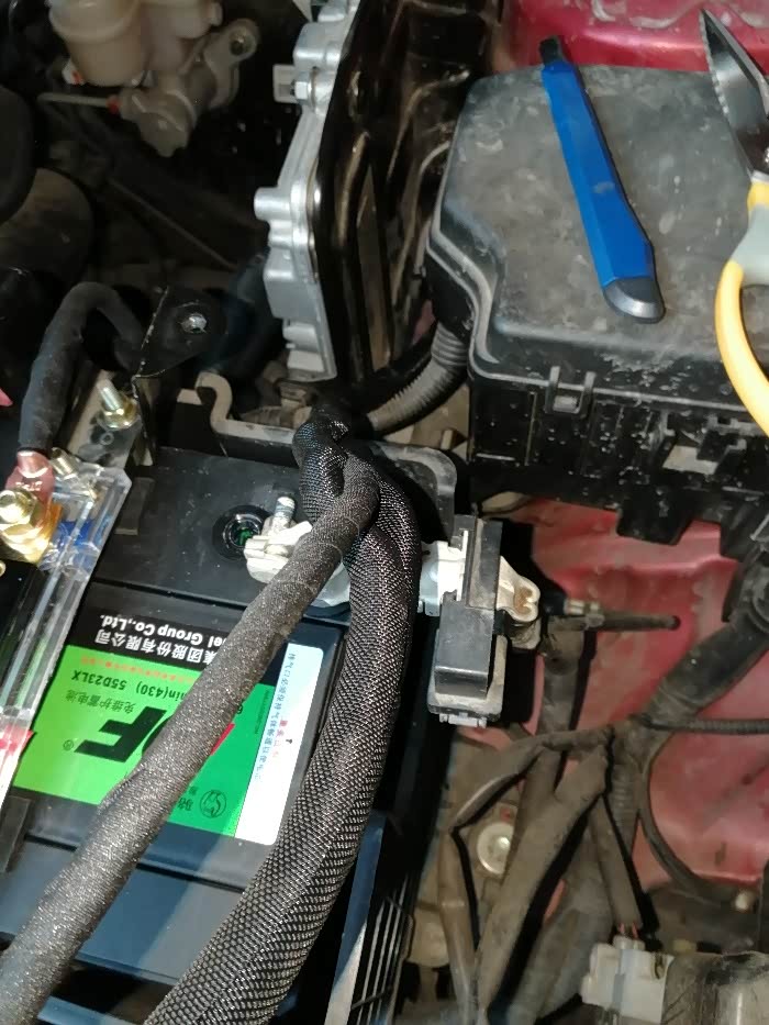 先叨叨几句,网购材料到货后,因为自己想偷个懒,找了个所谓的专业汽车电工安装,心想既然专业,那安装逆变器应该是小问题吧,等安装好直接取车就行了,省得自己麻烦。可是取车时我傻眼了,走线乱七八糟,保险盒用扎带固定,铜鼻子用锤子砸,空开接线一拉就掉,所有接线头就包上一层电工胶布,负极搭铁还说我穿两根线是多此一举。真他娘的配得上专业两个字,活干得那是相当优秀。问他收多少钱?他说不给了,小事。我也没和他客气,准备开车走人,回去自己返工。可是启动车时,电瓶没电了,连喇叭都按不响!我猜想电是不是被放完了,拿万用表一试,果不其然,一点电的都没有!在他店里拿个电瓶点了火,去乡下办事开了40多公里,停车后又没电了,害得我又找人拿了个电瓶和搭火线来发动车子。问电工,他说我电瓶不好,寿命差不多了,可能坏了。卧槽,这种话也说得出口,我电瓶原装才用两年,看在他是亲戚的兄弟份上,自认倒霉,算了,重新买个电瓶换上,花了300大洋。前车之鉴,望各位还是自己准备材料,工具,花点时间自己弄,图个放心。