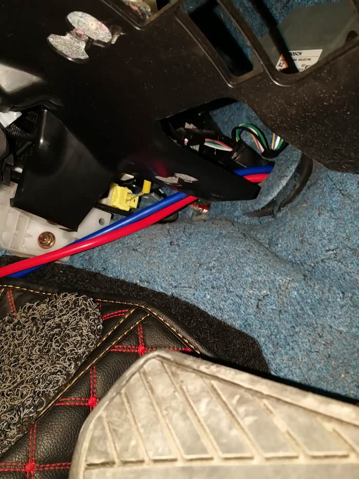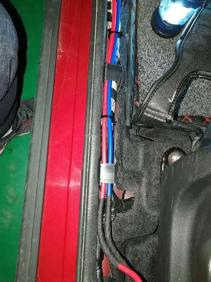 胆大心细,试着用合适的力度往上扣开护板。然后沿原车线束穿线,虽说车身就是负极,但两根线还是更安全一点,不建议负极搭铁。