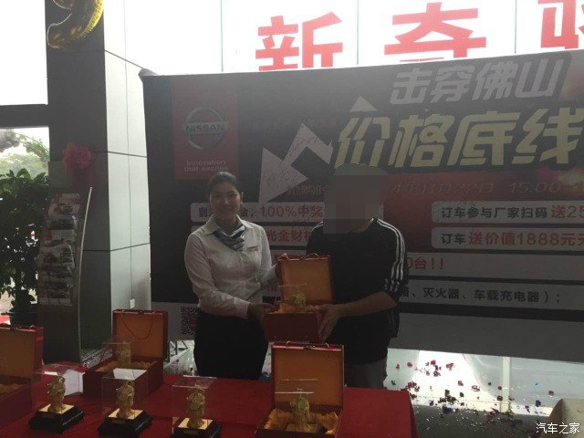 后来为了真正了解车价,加了好几个群和团购群,但是价格都是偏高了还是达不到心目中价格。最后不知道运气还是什么问题加了个佛山的购车群里面的人基本都是新车主,很多价格都是近短时间的价格。这里要谢谢抛浪头,因为他买的价格是我心目中的价格 13. 几但是在广州买的,果断要求给销售的电话。失望的是销售不肯上粤X的牌,双11庆丰刚刚搞活动晚上就杀去谈价格了,价格跟浪头的价格差不多但是当时带不够弹药去下定只能够过几天才下订。在1122的那天又有活动了就冲着他们的金财神去的而且又礼包送的,直接跟他杀价最主要折现了导航3000块,达到心目中的价格了果断下订了。购车就是这么愉快的结束了