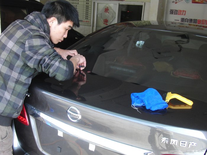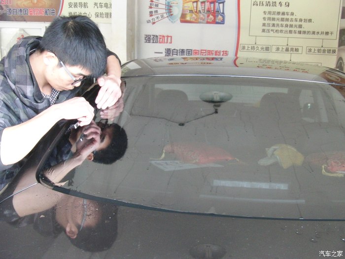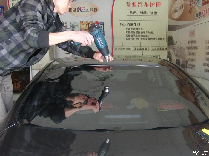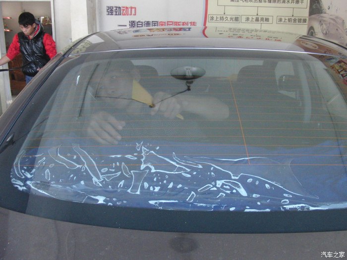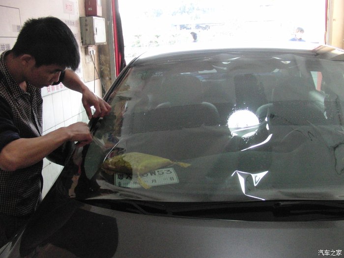 开动开始贴,师傅比较认真洗玻璃都洗了 3 4遍,所以膜上我看不到灰尘