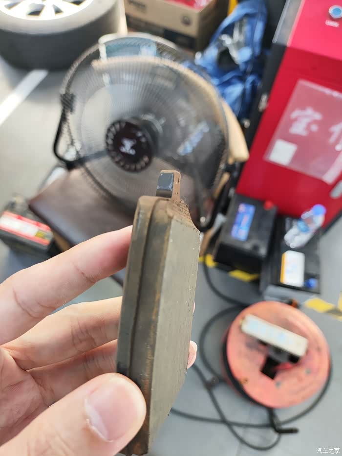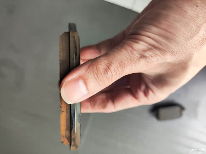 旧片磨损程度看起来还好,感觉还能开一段时间。不过刹车的脚感明显变硬了,且起步有异响。该换的还是要换,起码换了脚感舒服又安全。希望新片能够好用持久。。