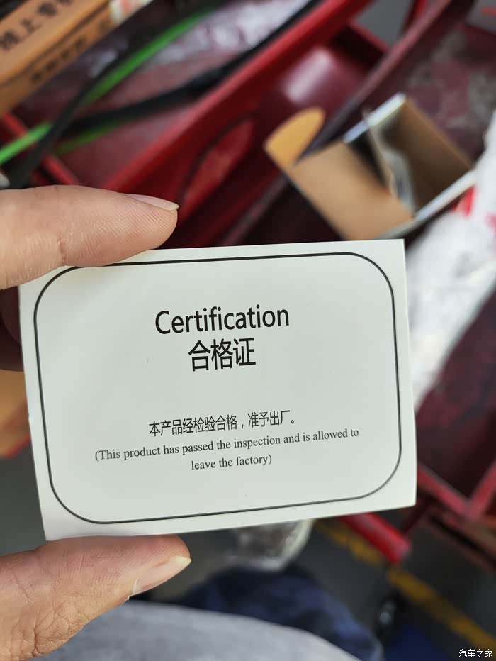 打开包装,新刹车片质感厚实,师傅拿来研究了一下,说质量不错。包装里还有合格证和安装说明书。