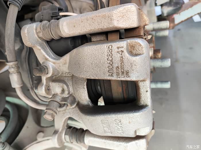 很快都安装好了,透过轮毂清洗的看到新刹车片的LOGO。师傅试踩几下刹车,没问题。完工。