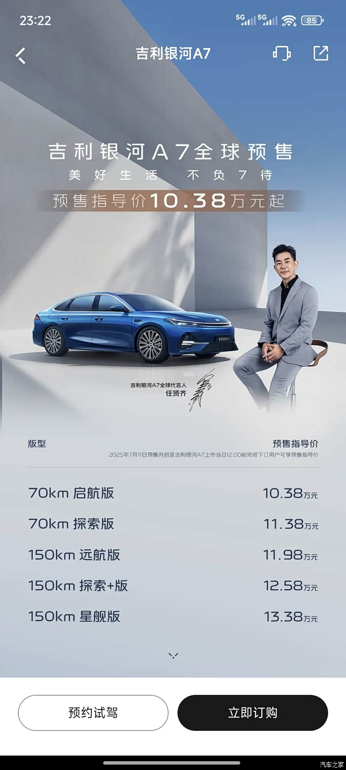 再问大哥们一个问题,比如预定了吉利银河A7顶配,你们猜的降价一万,顶配会降么?还是只有入门降?全系降的话如果预定了顶配,会给降么??