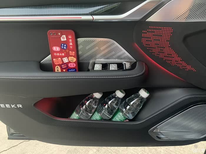 4.门板储物格,前排的门板储物超大,放三瓶中矿泉水还有空间。