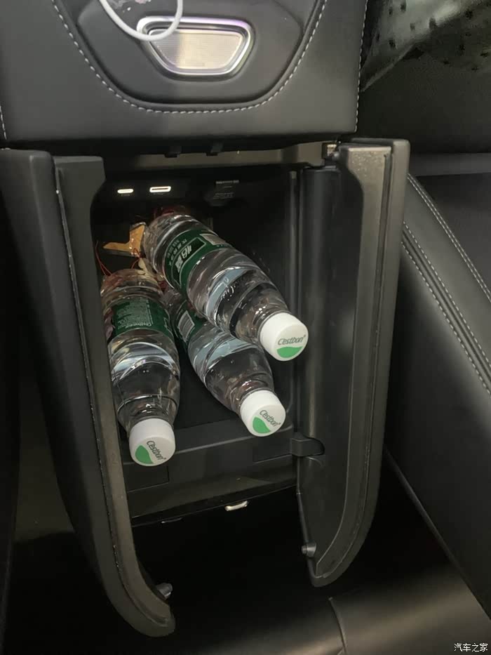 1.手套箱,这里的位置不算小,放矿泉水或者易拉罐饮料都能放好几瓶,而且还能制冷,手套箱上面有个旋钮开关,打开就能制冷;