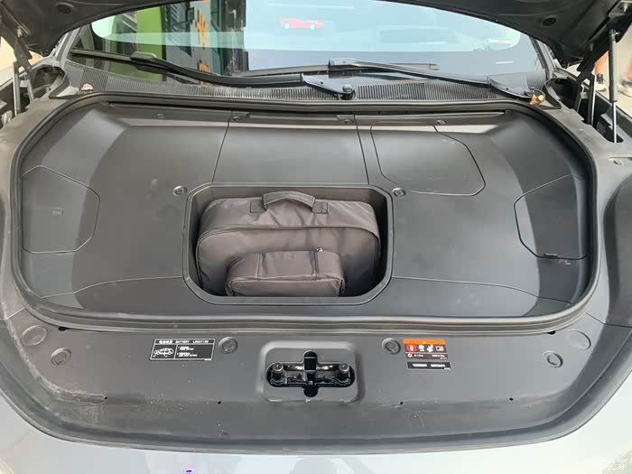首先是前盖部分,有一个小方格,不过那里已经放了220v的慢充线和补胎套装,已经没有可以放其他东西了,如果把那些拿走的话,我觉得这里放一个保温箱还是不错的,跑长途还能放点食物在里面!哈哈!