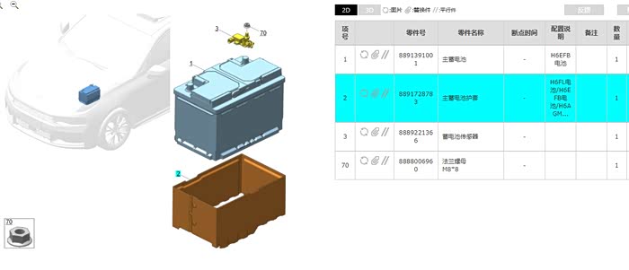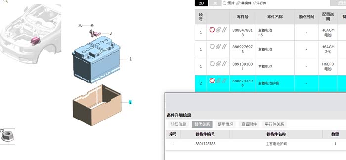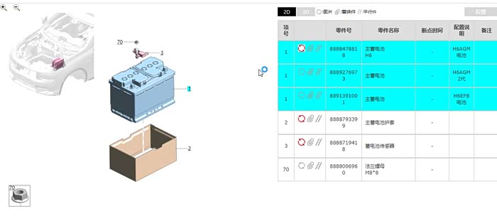 但现在更换电瓶使用的是风帆AGM电瓶,使用零件号:88892-76973