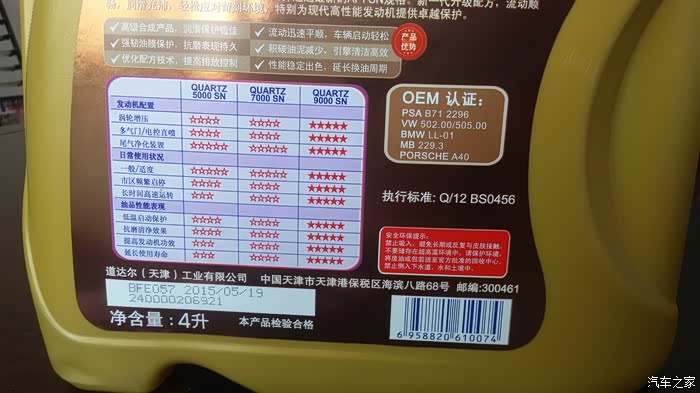 机油选用了道达尔快驰9000,主要参考了原标志508车主建议.