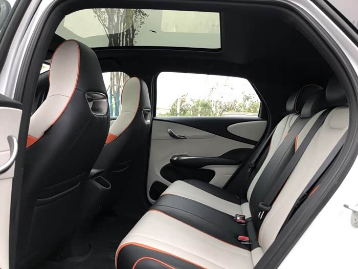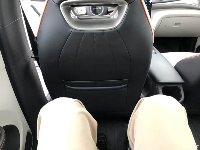 不信邪的哥们非说是我腿短才显得后排空间大,在前排调好他合适的座椅位置之后,还要来后排试一把,他这大长腿,海豚轻松放下完全没问题,腿部到前排座椅后背还有富裕空间……这次才服了,说这小车简直是“有容乃大”,超出想象。