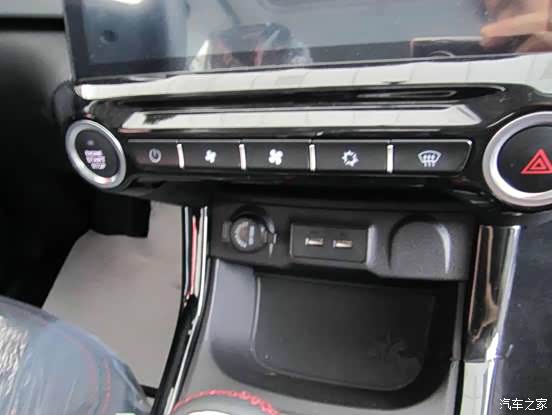 一键启动,下方还有两个USB接口,这样有车就不担心手机没电。