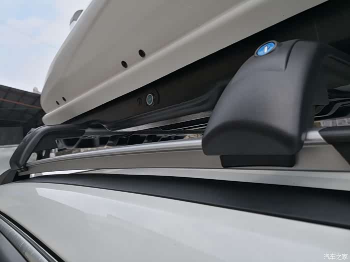 咱们裤子的原装车顶行李架,外侧有抓手,内侧是光滑的,这就导致了扣手的力量都集中在了外侧,内侧的是硬塑料包的不锈钢,起到一个支点的作用