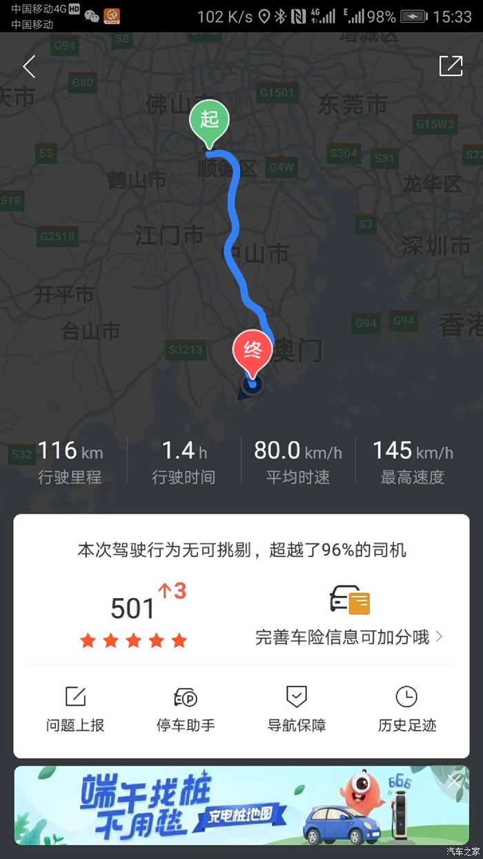 这张是我回来时候的导航截图,刚好回来跑高速,路测了一次。