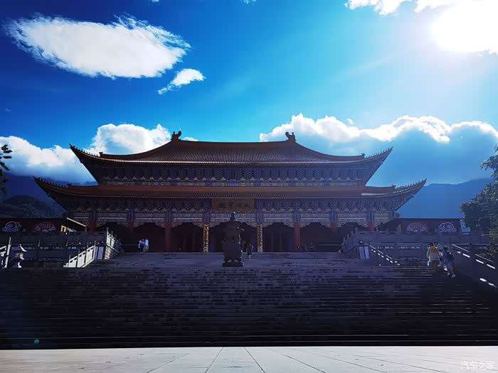 三塔寺因为是皇家寺院,所以气宇轩昂,庙宇巍峨,摆渡车可以从景区门口直接开到寺院的门口。寺院的建筑由前至后,由低到高,这是需要一级一级台阶走上去的,本来这不是难事,但是烈日当头,也是一个小挑战。