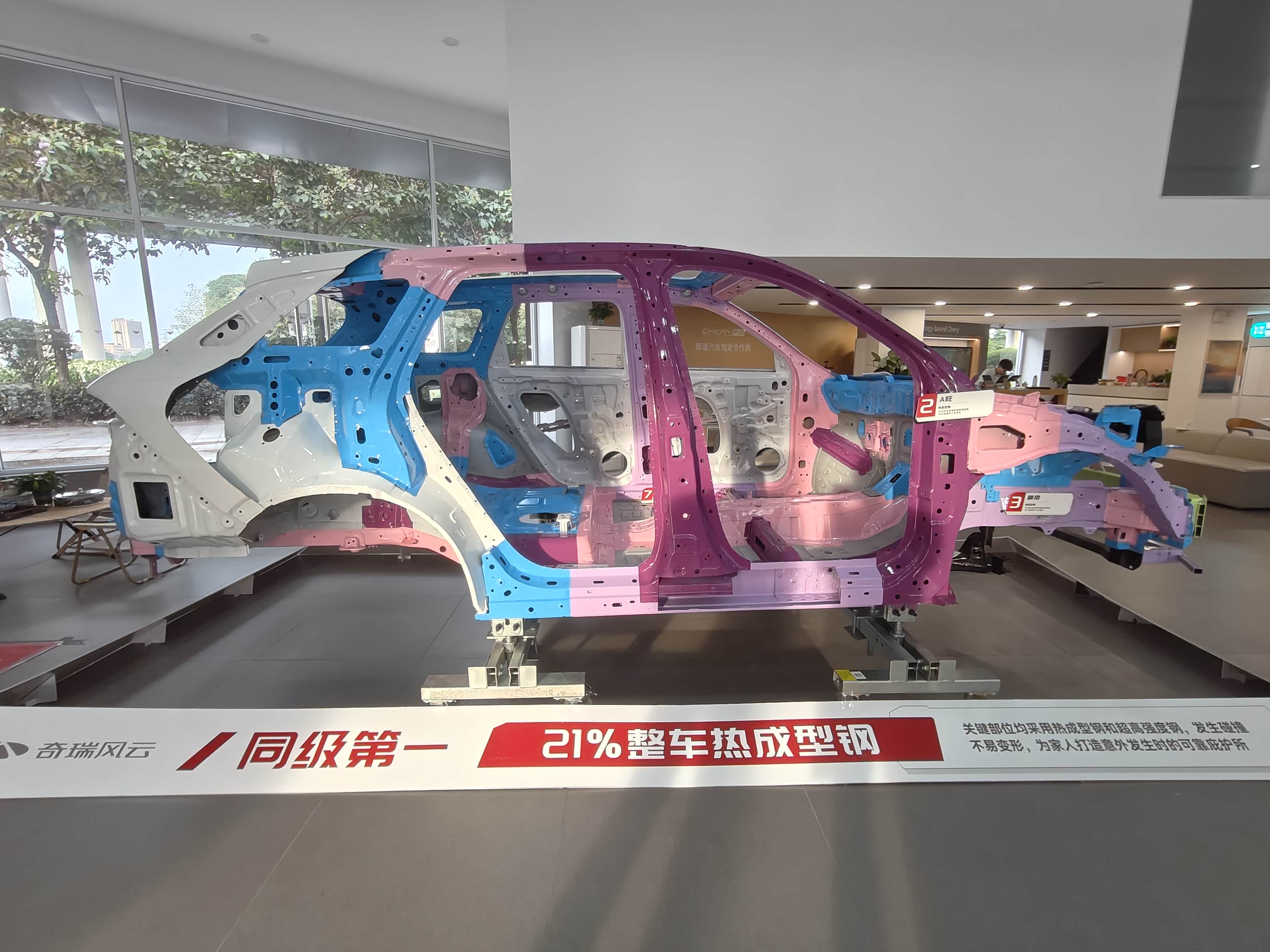 奇瑞风云T9在安全性方面是下足了功夫,车身结构设计符合全球五星安全标准,它的用料能科技,使用了85%的高强度钢和21%的热成型钢,提供了坚固的保护性,这种设计能够有效抵御外部冲击,确保乘客在发生意外碰撞的安全。