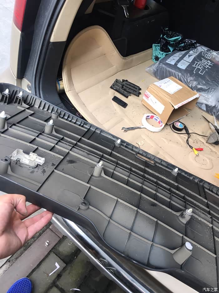 这个板子叫什么名字呢?我把它叫后备箱扣板…这个挺好拆的。