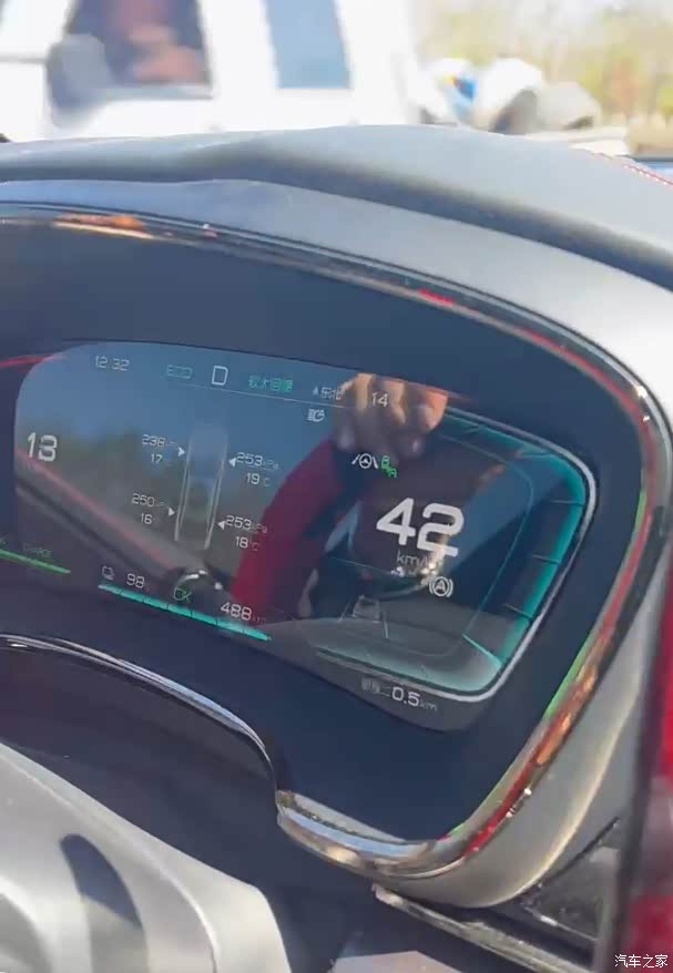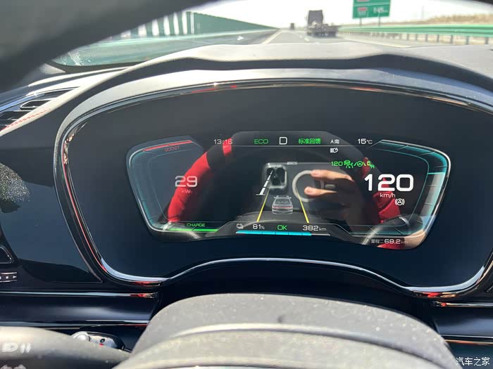 有一段下坡,我就让小粉将车辆动能回馈调成较大,匀速前进。回收效果还是不错的!
