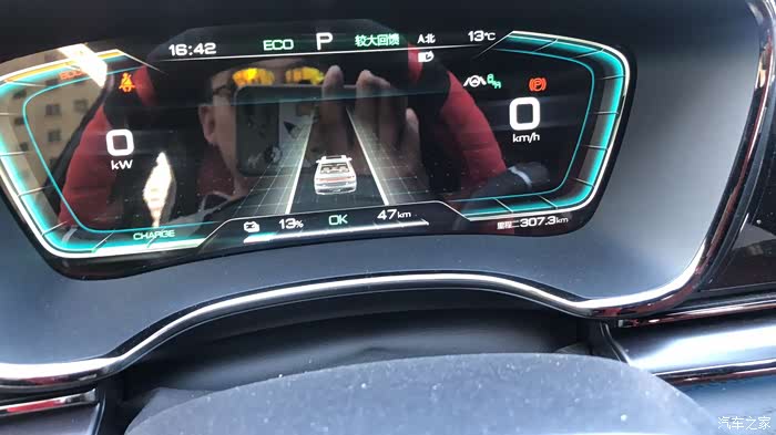 到达充电站附近时还剩13%,47KM的续航,总共跑了310公里左右,这次我们没有省着跑,其实电动车最经济的时速时80-100KM/H