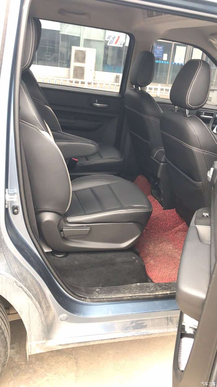 ,我1米8的个子坐进去丝毫不感到拥挤,头部空间和腿部空间非常充裕。中排位置可以说是最舒服的,座椅靠背可以调节,而且还配备了中央扶手。后排空间也非常大,我坐到里面腿部也很舒服,而且后排两侧还配备了储物盒和USB充电口,很人性化。