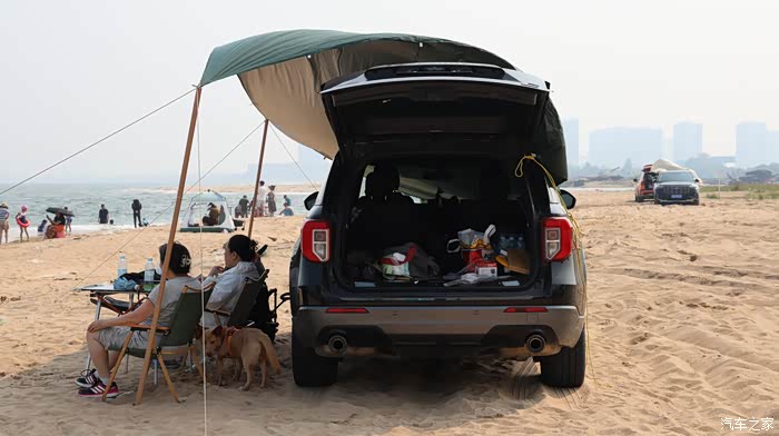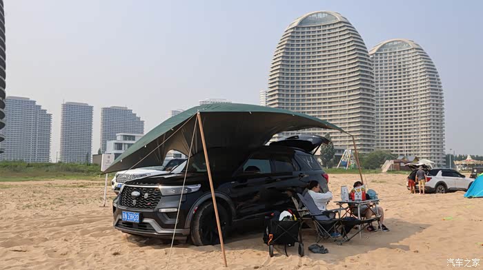 有人带着孩子在浅水区踏浪,浪花拍打着小腿,孩子的笑声比海浪还响亮;有人支起帐篷,铺上野餐垫,和家人分享着零食,聊着生活琐事;还有的摄影爱好者扛着相机,追逐着日出日落,想把东戴河的美景永远定格。福特探险者的后备厢此时成了“移动仓库”,帐篷、沙滩玩具、钓鱼竿等……无论多少装备,都能轻松收纳,这也让大家的海边时光更加从容惬意。