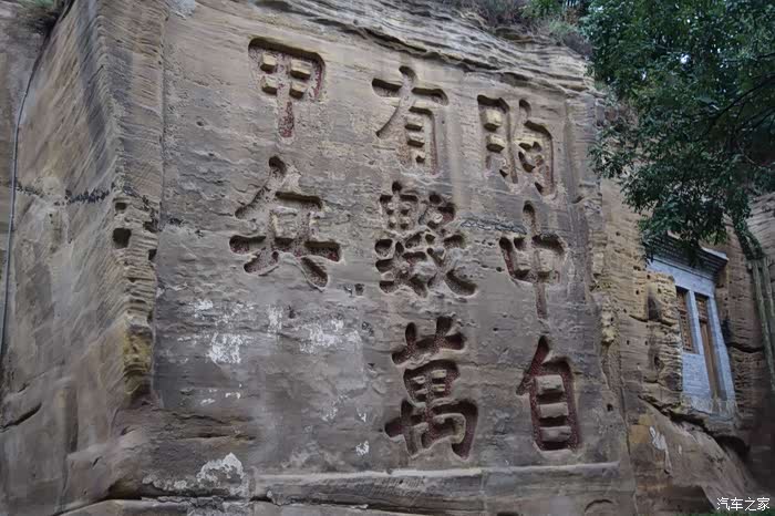 在走回停车场的路上,有很多刻在岩壁上的书法作品,顺便拍了几张。