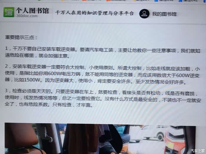 在小车上加装逆变器,是我们的第一次偿试,是学习前面提到的自驾达人“风吹百雪”的帖子里面的内容弄的,但他们在帖子里把加装“逆变器“说得很悬浮,那可能是他门不太懂电,也是可以理解的,而我本人是电气工程师,自然就不在话下了!