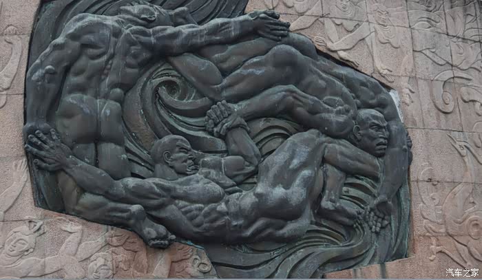 最显眼的是:毛***的“实事求是”四字的石刻,因为那红底色特别红!