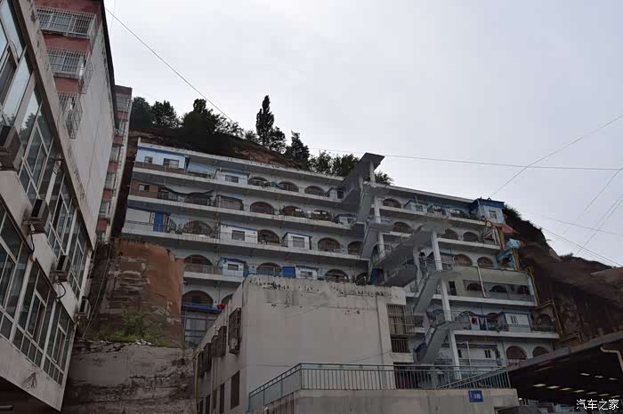 车就停在旁边一个小区的空坪里,后面就是半窑洞的小区房子