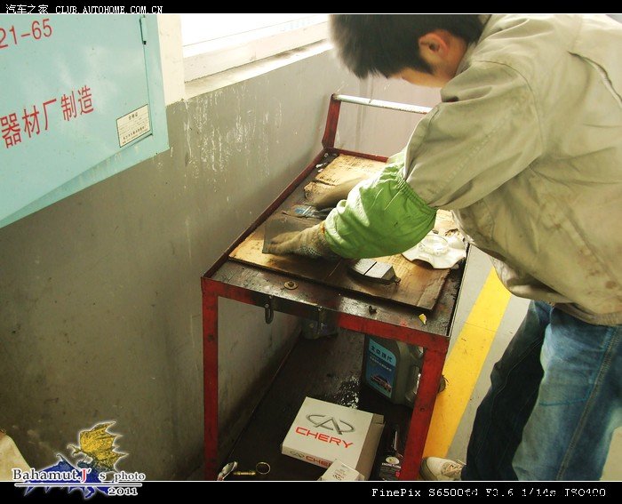 15、维修工按照售后人员的要求打磨刹车片,可惜他们又偷懒了,本来售后人员说要所有都打磨,他们说副驾驶侧的平整不用打磨,结果只打磨了主驾驶侧的刹车片。打磨也不细致,只简单的打磨了几下,我还想多拍几张照片,结果等我对焦构图,才拍了一、两张,就打磨完了,考虑到当时来维修保养的车很多,维修人员忙得很,我也就没多说什么了。