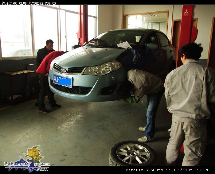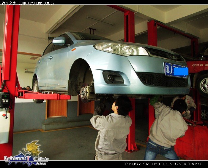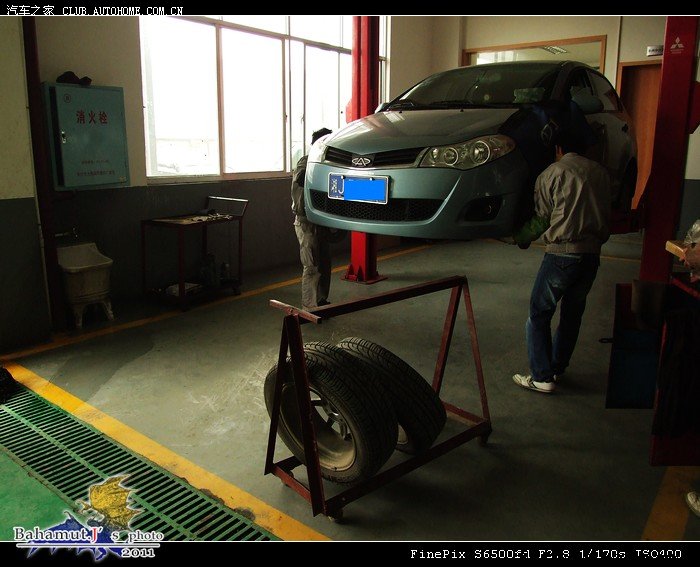 1、我的风2上架开始拆轮胎,旁边看的2人是来这里作保养的风云2(穿灰衣者)和旗云2车主(穿红衣者),我向他们说起了我的刹车盘的问题,并且现场让他们摸自己车的刹车盘与我的车刹车盘做对比,另外还有一位瑞虎车主也做了比较。做比较的台风云2开了2万公里了,瑞虎开的里程就更长了,而我的风2才跑了5700多公里。经过比较后,他们都说我的刹车盘比他们的磨得厉害。