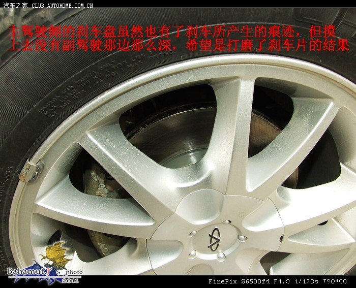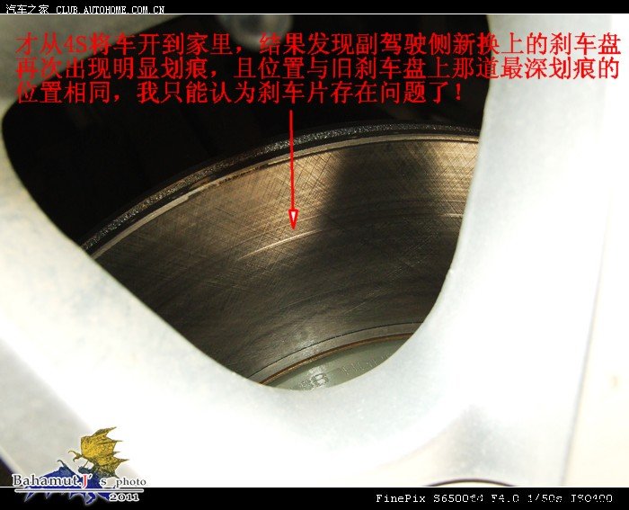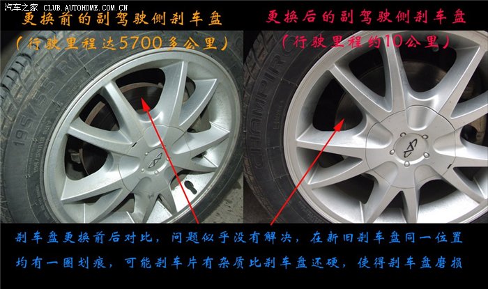 不管大家怎么说,我依然坚持自己的观点——我的风云2刹车盘是过度磨损了的。之所以坚持这个观点是因为我的车才开几百公里刹车盘就开始起槽了,且两边的磨损程度不同。而我单位同事的车基本都比我买得早,跑的路比我多,但却没有出现我这样严重的磨损(我不仅是看,还用手去摸刹车盘,手上的感觉让我确信了这一问题)。人家的刹车盘虽然也摸出了划痕,但却是非常浅的,手摸上去没有明显的凹凸感,盘面总体来说是平整的,而我的风儿的刹车盘摸上去凹凸感非常明显。另外有一次我去4S给车补漆的时候,我在4S店见到一台旗云3的试驾车,我跟开试驾车的维修师傅聊起了车,说到了我的车刹车盘有划痕问题,维修师傅也发现那台旗云3的一个刹车盘也磨出了槽,而其它几个刹车盘则没有这个情况。当时那个试驾车也才跑了几百公里,维修师傅也觉得很奇怪。连4S的维修师傅都觉得不正常足以说明我的刹车盘磨损是非正常的。