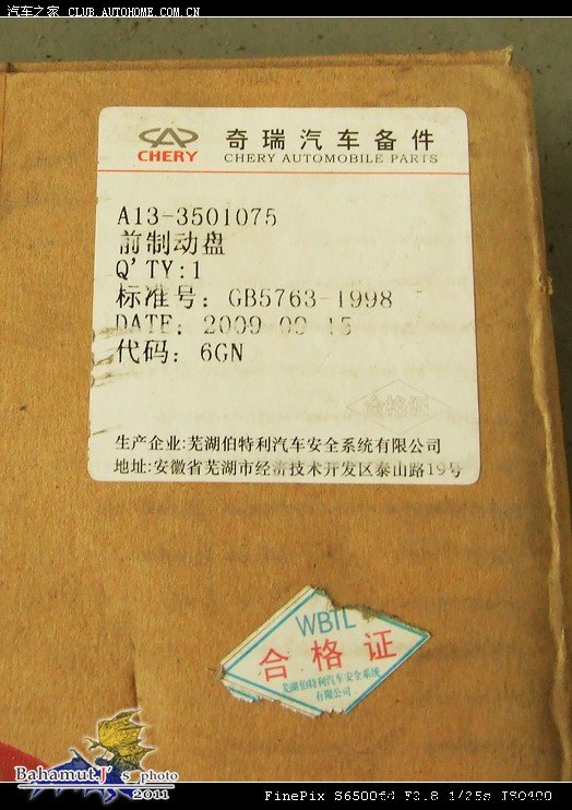 2011年2月20日下午在淘宝网订购了金麒麟的陶瓷刹车片,价格是110元。2月22日到货,收到货后我就迫不及待的开车到公司对门的汽车维修店更换刹车片,问了两家店都要价40元,似乎比网上看到的更换费用要高,懒得再找了,在第二家更换了。淘宝网店上没有找到风云2专用刹车片,但店老板称风云2刹车片是与旗云通用的,于是订的是旗云的刹车片型号为PL0325,这次更换上没有问题。