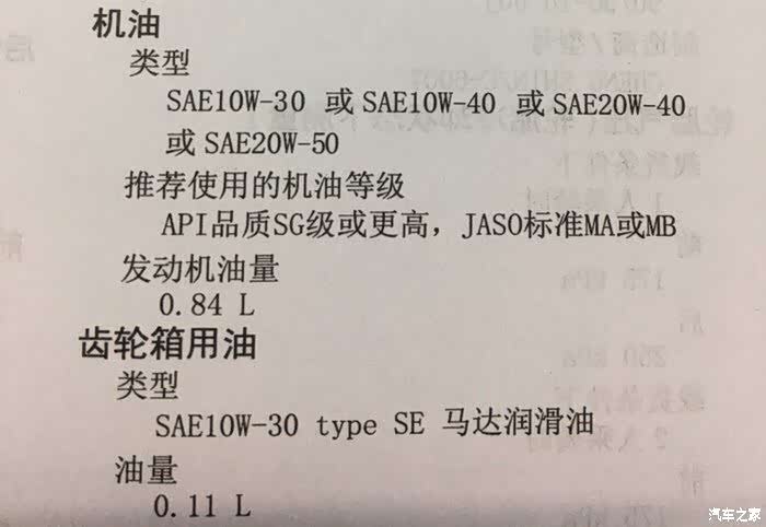 请看巧格说明书关于机油的这段,标准MA或MB,MB就是汽车机油。