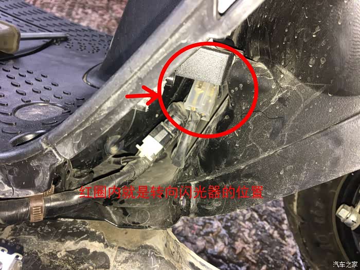 拉开包围后才找到卡子,转向灯闪光器也看到了,***!藏在这里面,手大一点都伸不进去,好不容易把蜂鸣器给并联到闪光器的2只脚上才发现,不管怎么接正负极,不用打开转向灯,蜂鸣器都在响,上网查询了一下,原来2脚的闪光器是串联在转向灯的电路正极上,跟3脚的闪光器工作原理不同,再说这个位置实在太不好操作,只能换个地方接线。