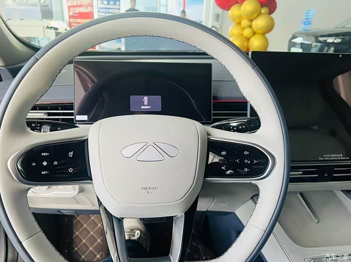 方向盘采用全新的logo设计了,蓝白搭配看上去还是档次挺高的!奇瑞还是挺听劝的一直在听网友的声音不断的在去做一些改善!