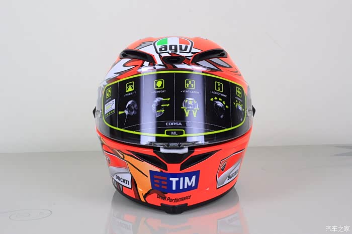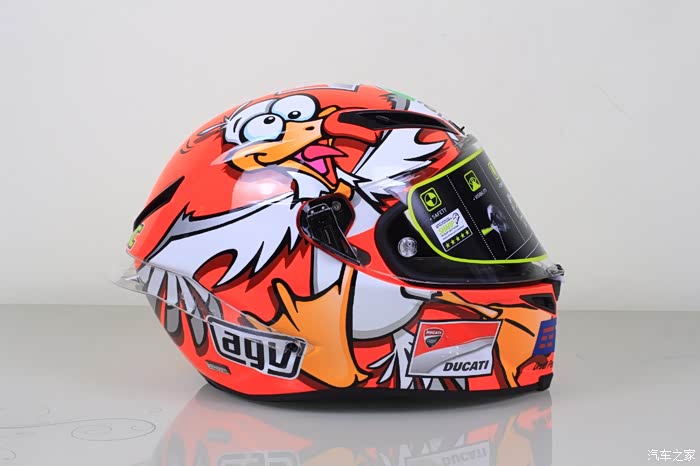 这款头盔的全名是AGV CORSA IANNONE WINTER TEST 2016,这个版画的来源是因为在iannone2016冬季测试赛中,过弯的时候撞死了一只海鸥,视频可以在视频网站中搜索到,后来为了纪念这只海鸥,iannoe的团队就设计了一样一款头盔。全球限量2000顶,受到了很多杜卡迪车友的喜爱。