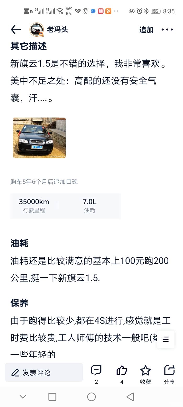 虽然旗云离我已经7年了,但是心里一直念念不忘,每次想到旗云,路上看到旗云,我都会走近好好端详一下,回想起当年左手手握着旗云的方向盘,左脚踩离合,右手握着档杆挂档,右脚脚踩油门,“嗡”的一声,走起了!
