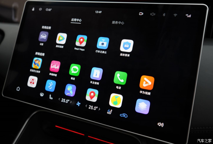 不过这车最让我喜欢的还得是这鸿蒙车机,它看起来跟我家的华为平板差不多,用起来很方便,上手也快,划来划去的也比较流畅,卡顿延迟什么的几乎没有体会到。内置的功能和APP还挺全面,常用的功能可以设置到快捷栏,用的时候一点就打开了。副驾的娱乐屏也可以和车机联动,看视频电影啥的可以在两个屏幕之间来回切换,还挺有趣的。另外它的语音控制真的智能,指令分辨很清楚,还能区分主驾和副驾的指令。这样的智能化表现确实是让我大开眼界,和我前面去试的极氪001差别很大,只能说华为真的是“遥遥领先”啊。