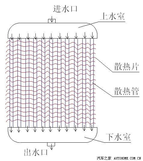 先看看老哥自己做的冷却水箱简图,在这里我仅仅对冷却水箱的工作原理做一些分析。